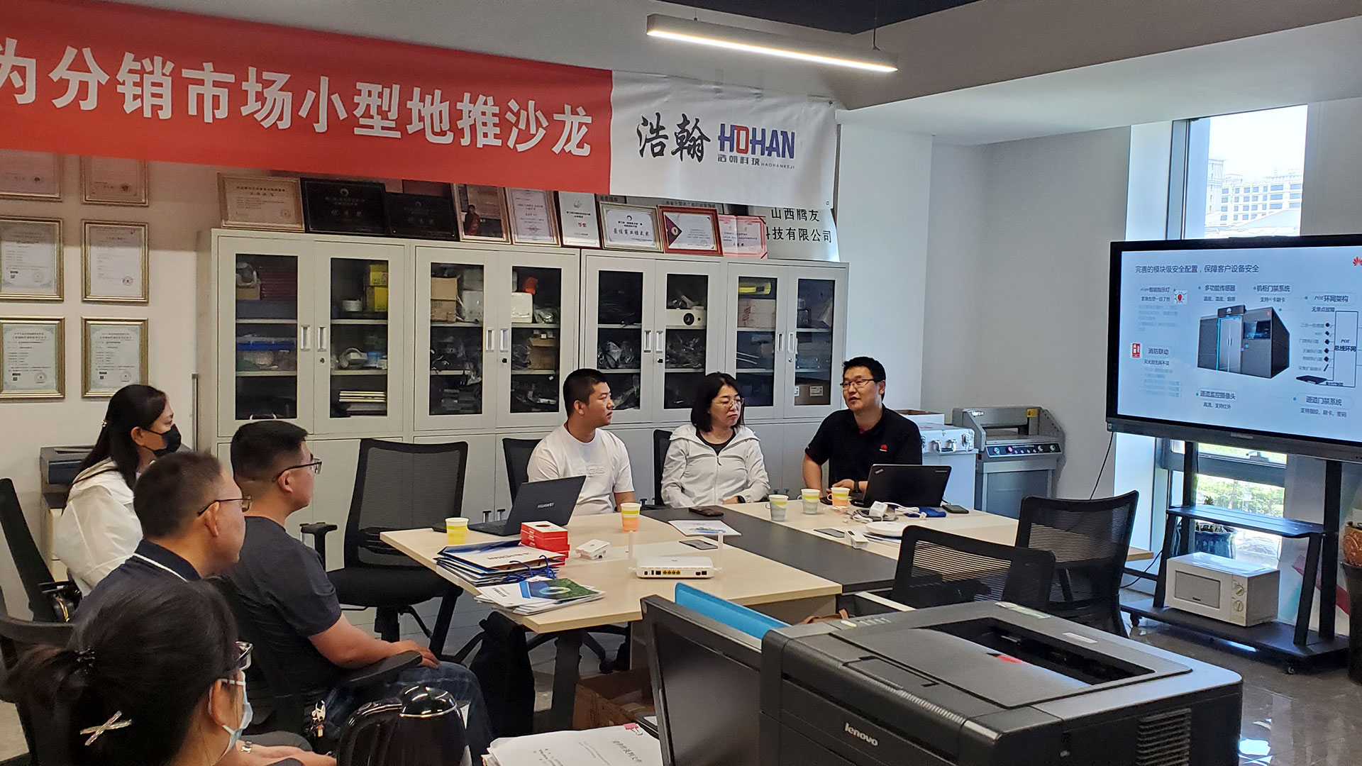 6月6日上午,山西浩翰興業(yè)科技有限公司總經(jīng)理劉民秀攜市場部和技術(shù)部骨干員工到我公司舉辦了“2023華為分銷市場小型地推沙龍”。本次沙龍主要針對華為SOHO無線網(wǎng)絡(luò)產(chǎn)品、華為模塊化一體式快裝機房以及華為綠電系統(tǒng)的技術(shù)方案、應(yīng)用領(lǐng)域和市場前景進行了綜合講解和現(xiàn)場演示。劉民秀總經(jīng)理針對華為產(chǎn)業(yè)布局、產(chǎn)品前瞻和技術(shù)路線等內(nèi)容做了精彩發(fā)言。華為產(chǎn)品專項工程師和我公司研發(fā)部工程師進行了細致的技術(shù)討論和案例分析。同時,雙方市場部、工程部相關(guān)人員就市場前景、產(chǎn)品定位和渠道策略等若干問題深入交換了意見。我公司總經(jīng)理蔡志軍女士做了總結(jié)發(fā)言,對浩翰興業(yè)本次活動給予了極高的評價。騰友科技作為華為多品類產(chǎn)品的集成商,本次和浩翰興業(yè)進行深入交流學習,對我公司鞏固技術(shù)優(yōu)勢,把握市場脈絡(luò)裨益無窮。